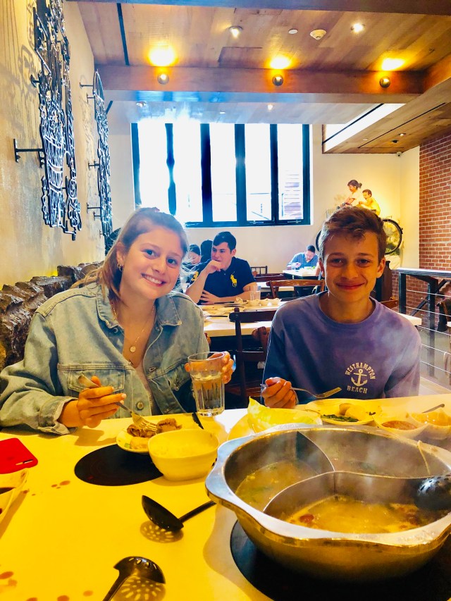 It was so much fun! We all ordered the Hot Pot; you pick 3 different broths to cook your food in. We chose chicken broth, Chinese Herb, and Tom Yum. The Tom Yum was the favorite because it was just the right amount of hot and sour and spicy!