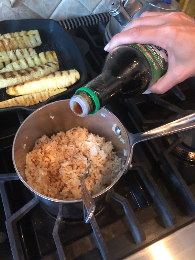 This is also great with grilled chicken. Use whatever part of the chicken you like and marinate it in what we used in the pressure cooker, pineapple and rice on the side. Yummy!!